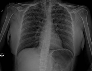 Figura 2: Radiografía de tórax anteroposterior. Resolución edema agudo pulmonar.