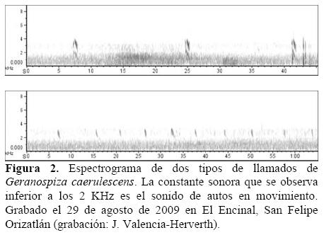 Se distribuye en ambas vertientes desde el sur de Sonora y sur de Tamaulipas hasta Perú y norte de Argentina (Howell y Webb 1995). El 29 de agosto de 2009, a las 09:56 h, RVH observó a dos individuos adultos de gavilán zancón perchando y vocalizando (Figura 2) en el dosel de un manchón de bosque de encino tropical (Quercus oleoides, Fagaceae) con una superficie de 20 ha, rodeado de vegetación secundaria y pastizal ganadero. El registro se realizó en el centro ecoturístico El Encinal, que se ubica a un costado de la carretera San Felipe-Tamazunchale (21°10'64"N, 98°37'38"O; 249 msnm). Al volar, uno de los gavilanes fue perseguido por un par de papanes (Psilorhinus morio). Las marcas distintivas observadas en G. caerulescens fueron los ojos rojos, pico negro; dos bandas blancas anchas y una banda terminal blanca en la cola, las alas redondeadas y las patas largas anaranjadas; en vuelo resalta una franja blanca en la base de las rémiges primarias (Howell y Webb 1995). El color de los ojos, el tamaño de las patas y las franjas blancas observadas en vuelo son las características que diferencian a G. caerulescens de Chondrohierax uncinatus.