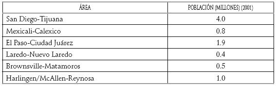 En toda la región fronteriza, las seis áreas metropolitanas más pobladas son: