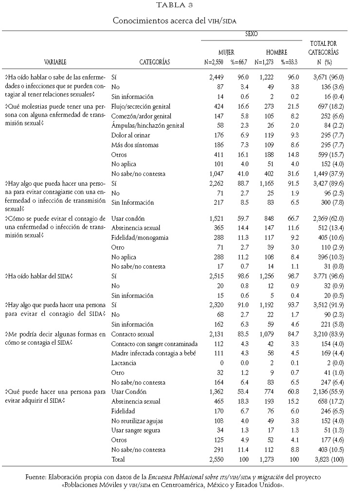En todos los casos se muestreó buscando prevalencias de migración, información y conocimientos de VIH/SIDA, prevención de ITS y VIH, aceptación para uso de condón y actitudes de rechazo a poblaciones móviles. Para considerar las diferencias de diseño muestral, en el análisis estadístico de este estudio, se incluyó en el modelo multivariado como covariable a cada una de las once estaciones de paso en las que se levantó la encuesta dejándose como referencia a Costa Rica.