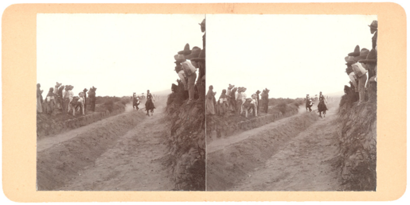Nuevamente se considera que la ausencia de una mayor cantidad de planos debió haber limitado la ilusión de profundidad al mirar la imagen en un visor estereoscópico. Sin embargo, el fotógrafo logró obtener una instantánea satisfactoria en relación con el movimiento de los jinetes. Una aproximación mayor de los jinetes al objetivo de la cámara habría resultado en una imagen de mayor impacto visual, como se observa en otras fotografías realizadas en circunstancias similares,51 la lejanía entre la cámara y el tema de la fotografía fue una constante. Un movimiento rápido capturado a corta distancia habría exigido obturaciones superiores a 1/600 de segundo, y es posible que los equipos con los que contaban los fotógrafos aficionados no fueran capaces de alcanzar tal velocidad.