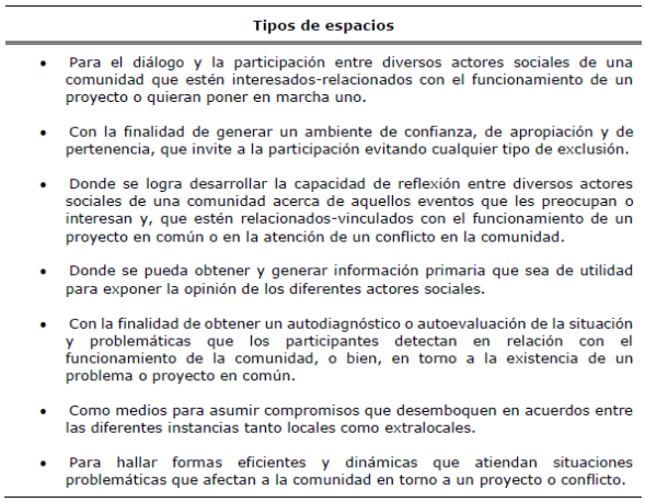 Tabla 1. Espacios de interacción social que surgen a través de talleres participativos