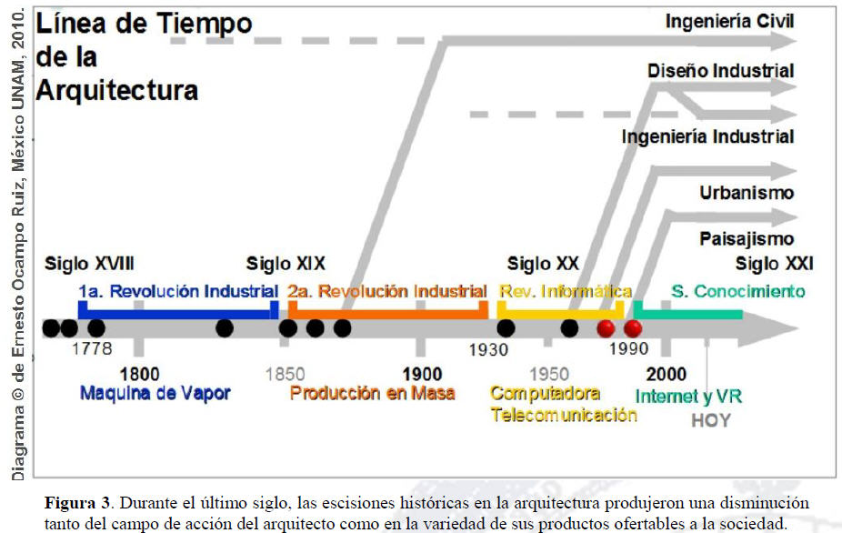 Es evidente frente a estos esquemas cíclicos, que las dos actividades preponderantes y tradicionales de desarrollo profesional del arquitecto, el diseño y la construcción, incluyendo sus productos principales y los espacios de actuación habituales, se encuentran francamente afectadas y recurrentemente amenzadas.