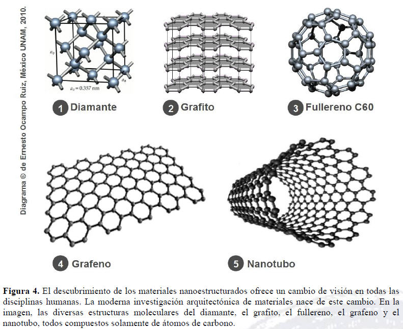 Con el descubrimiento de la posibilidad de manipular la estructura molecular de los compuestos químicos para crear una nueva gama de materiales actualmente conocidos como nanoestructurados10, se abre un cambio de paradigma en la ciencia y la ingeniería de materiales a nivel mundial. Esta manipulación ampliamente identificada hoy como nanotecnología, es la fuente principal de un sinnúmero de aplicaciones industriales y comerciales para todas las disciplinas culturales humanas, pero sobre todo para la arquitectura.