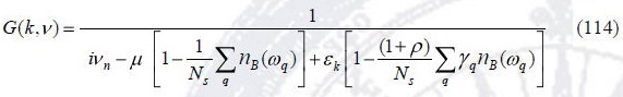 donde k y vn son respectivamente el momento y la fracuencia de Matsubara del campo fermiónico, y definimos: εk = -t∑I exp -ik ·I .