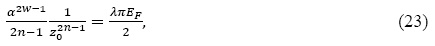 vemos entonces que w ≠ 2. Propongamos la elección mas sencilla para ese coeficiente, que es w=3. Con esto hemos determinado los coeficientes necesarios para nuestras funciones V(z) y n(z). Después de haber determinado estos coeficientes, debemos encontrar los otros parámetros de las ecuaciones, esto es, debemos encontrar z0 y α. Es bien conocido que el sistema debe satisfacer electroneutralidad, entonces