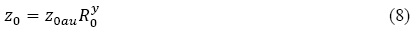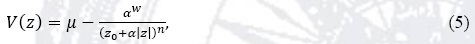 En estas expresiones x e y son exponentes que deben ser determinados. Sustituyendo estos parámetros adimensionales en la ecuación para V(z) se sigue