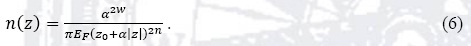 donde λ es la densidad lineal de dopantes. Sustituyendo n(z) de las ecuaciones previas tenemos: