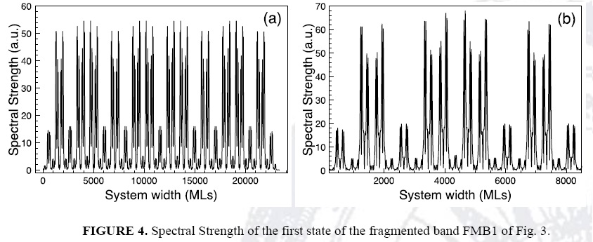 The critical nature of the wave function is presented in Fig. 4. To obtain this result we have taken the spectral strength of the first state of FMB1 as well as its amplification, Fig. 4 (a) and (b), respectively.