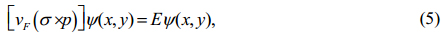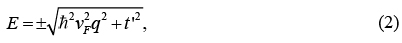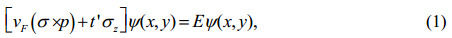 where vF is the Fermi velocity of the Dirac electrons in graphene, t' = mv2F is the mass term, σ= (σx,σy ) are the Pauli matrix, σz is the z component of the Pauli-matrix vector and p = (px, py ) is the in-plane momentum operator. To solve this equation one can writte the following parabolic dispersion relation,