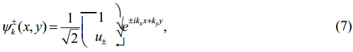 with k the two-dimensional wave vectors corresponding to the SiO2 substrate denominated as the k-region (Fig. 1). The wavefunctions are represented by the expression,