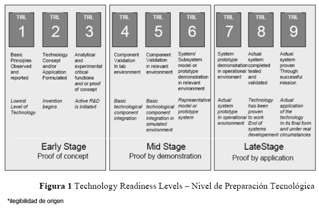 Otro método de valorar si una tecnología está en una etapa temprana es por su nivel de preparación tecnológica (TRL, Technology Readiness Level) empleado para establecer la etapa de madurez de una nueva tecnología en particular con el fin de evaluar qué tan apropiada es la tecnología para una aplicación práctica (Štrukelj & Dolinšek, 2011). Los TRLs son una herramienta en la práctica de la administración de la tecnología utilizada, por ejemplo, en la planeación o en la adquisición de tecnología y son usados por diferentes organizaciones e instituciones públicas o privadas.
