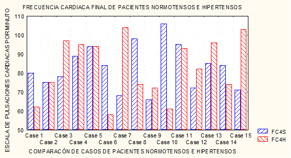 Gráfica 1 Presión arterial media final de los pacientes normotensos e hipertensos. TAM 4S: Presión arterial media final de los pacientes normotensos. TAM 4H: Presión arterial media final de los pacientes con hipertensión.