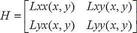 where Lxx, Lxy, Lyx, and Lyy denote the second-order derivatives of the intensity image as follows: