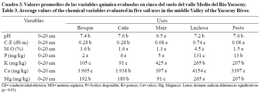 Una vez analizadas las variables físicas, en el Cuadro 3, se presentan los resultados paras las variables químicas evaluadas.