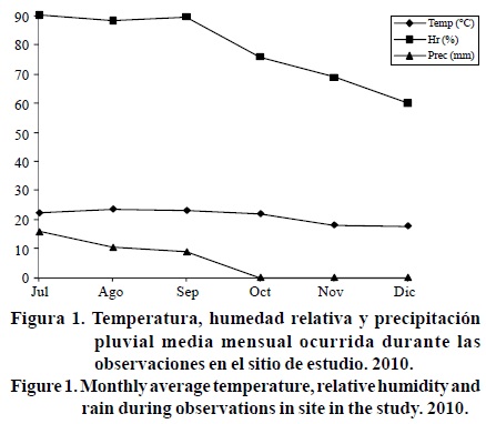 Variables. Brotes infestados y ninfas por brote. En cada punto cardinal del árbol se colectó un brote de 8 centímetros de longitud, en total se colectaron 20 brotes por tratamiento en cada muestreo, aquellos brotes donde se observaron ninfas vivas se consideraron infestados. Se contó el total de ninfas por brote, estos se colocaron bajo un estereoscopio marca Carl Zeiss para diferenciar con mayor facilidad las ninfas vivas de las muertas. Durante las observaciones, se registró temperatura media diaria, humedad relativa y precipitación, los datos se tomaron de la estación climática ubicada en Tepic, Nayarit de la red estatal del Instituto Nacional de Investigaciones Forestales, Agrícolas y Pecuarias (INIFAP).