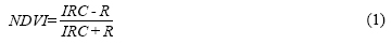 Durante la última década se han realizado investigaciones para desarrollar metodologías e índices que permitan discriminar los suelos agrícolas bajo prácticas agrícolas específicas. Uno de los índices más ampliamente empleados para estudiar la vegetación en diferentes condiciones es el índice de vegetación de diferencia normalizada (NDVI por sus siglas en inglés), desarrollado por Tucker (1979), el cual es calculado a partir de la reflectancia en el infrarrojo cercano (IRC) y el rojo (R) según la ecuación 1.