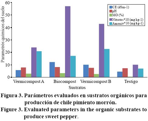 El uso y la aplicación de sustratos orgánicos incrementan la carga de nutrientes para los cultivos. Asimismo, incrementaron la presencia de nitratos lo que indicaria que el N estuvo disponible para el cultivo. Estos resultados demostraron que la producción de chile pimiento morrón en sustratos orgánicos bajo invernadero, con las mezclas de sustrato 1:1 realizadas, puede ser una alternativa viable puesto que generan rendimientos aceptables.
