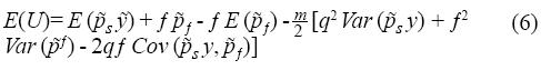 Para conocer el tamaño del contrato de futuros (f) que maximice la utilidad esperada (6) debe ser derivada respecto af e igualada a cero:
