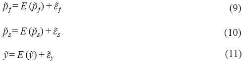 denota el rendimiento del producto, ambos precios y el rendimiento son variables aleatorias, de ahí que se considera riesgo de precio y de rendimiento. Tanto el tamaño del contrato f) como el precio acordado (pf), son conocidos por el productor, por lo que no representan alguna fuente de riesgo; pero, el precio en el mercado de futuros (