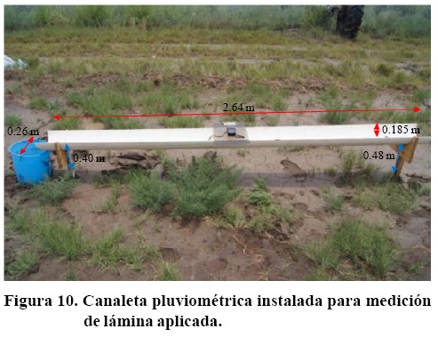 Las canaletas se instalaron en 54 sitios de muestreo a lo largo del perímetro. De manera perpendicular a la rodada de la torre y paralela al paso del brazo del pivote con un desnivel de 3 %, a favor de la ubicación de la cubeta para el escurrimiento.