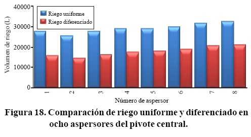 Se comparó el riego diferenciado con la aplicación uniforme de una lámina de riego, definiendo que en las condiciones de operación del pivote central es de hasta 39.09% menos.