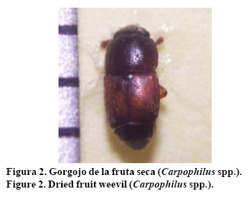 Gorgojo de la fruta seca Carpophilus spp. (Stephens, 1829) (Coleóptera: Nitidulidae).