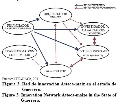 En el estado de Guerrero se plantea la red de innovación Asteca-maíz para promover la innovación de tecnologías de bajo costo mediante esquemas de extensionismo a través de la asistencia técnica, capacitación y talleres demostrativos de las innovaciones. Los actores que la integran son los siguientes: