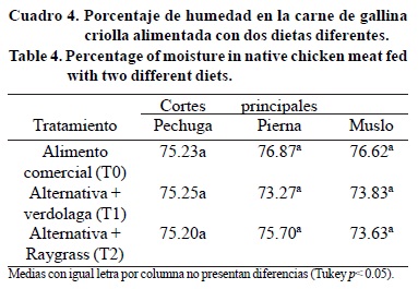 Efecto de Portulaca oleracea y Lolium perenne en la carne de gallina criolla*