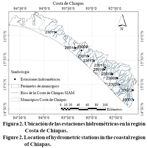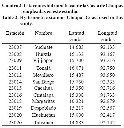 Para este estudio se cuenta con la información de precipitación diaria, temperatura máxima y mínima de 51 estaciones climatológicas para el periodo 1960-2010 (Figura 1 y Cuadro 1). Respecto a la información hidrométrica, se tienen disponibles 12 estaciones de aforos para el periodo 1964-2005 (Figura 2 y Cuadro 2).