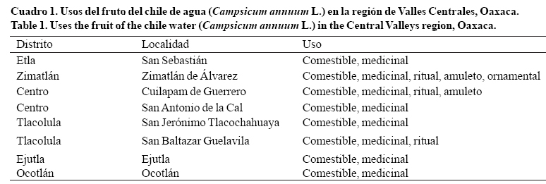 Contribución al conocimiento etnobotánico del chile de agua (Capsicum annuum L.) en los Valles Centrales de Oaxaca, México*