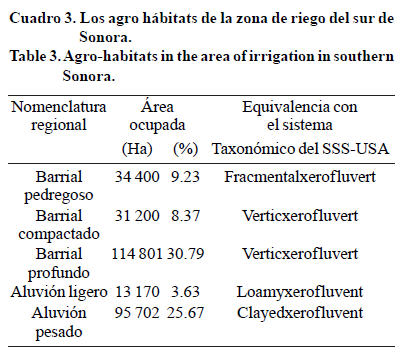 Para cada agro hábitat se utilizaron dos sitios de referencia, donde se describieron los perfiles de suelo y se colectaron muestras que se analizaron en el laboratorio de suelos del Instituto Tecnológico del Valle del Yaqui, ubicado en el Block 611, Valle del Yaqui, Sonora. Los sitios considerados fueron los siguientes: