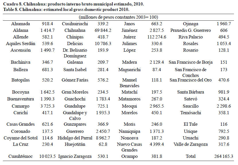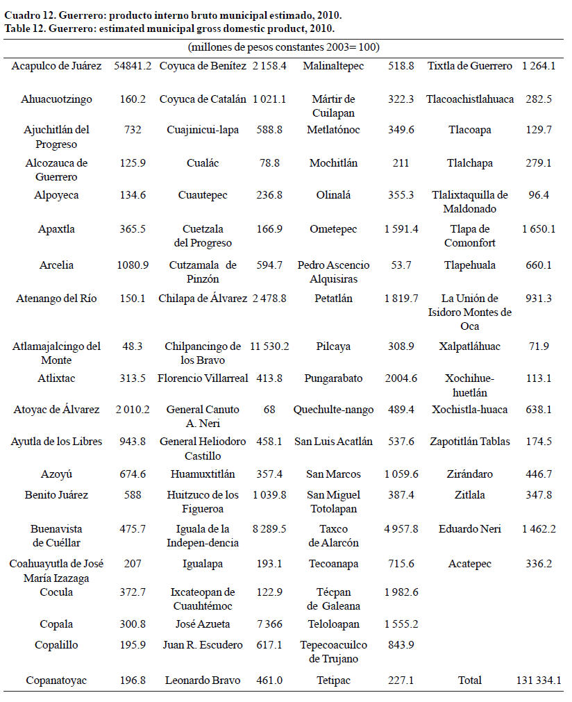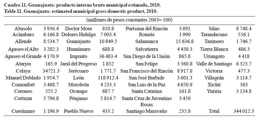Las matrices estimadas del PIB municipal agregado por estado y por actividad económica son consistentes exactamente con las siguiente matrices oficiales de información estadística: 1) la matriz de la población económicamente activa por municipio y por actividad económica; 2) la matriz de la población económicamente activa por estados y por actividad económica; y 3) la matriz del PIB por estados y por actividad económica. Por esta razón, los estimadores del PIB municipal presentados en la siguiente sección son insesgados, para cada estado y para el país en términos agregados. Esta propiedad surge del hecho de que los estimadores aquí reportados surgieron de una estructura informacional previamente calibrada a la información oficial correspondiente. Por otra parte, la varianza de los estimadores del PIB por estado es la misma que la del PIB por estado reportados en el sistema de cuentas nacionales (INEGI, 2010).