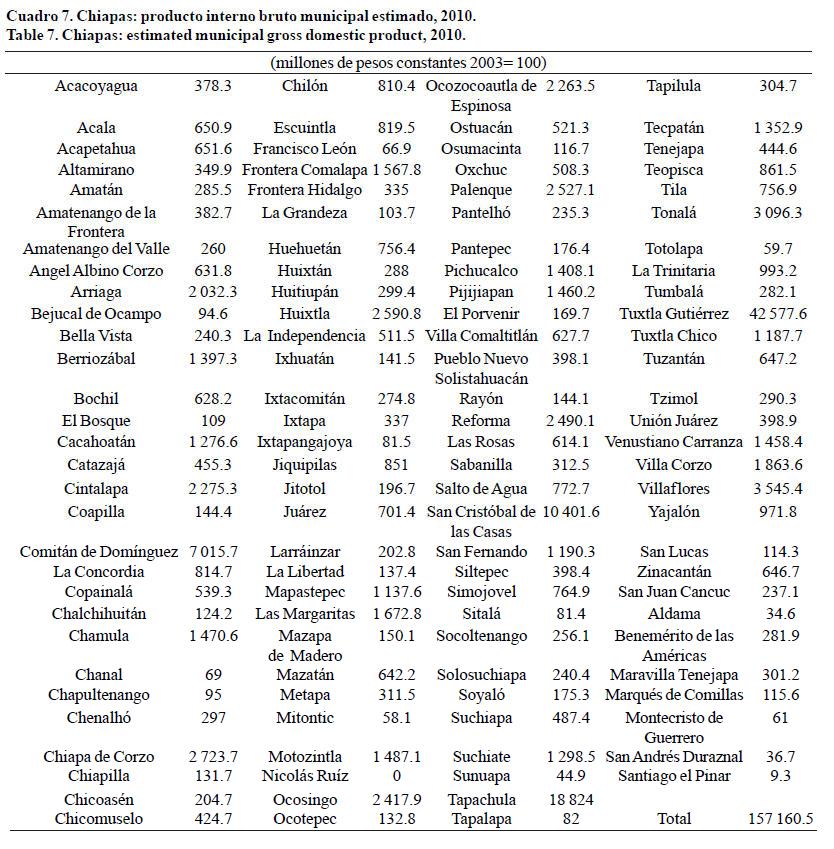 La secuencia de las 32 matrices Âm conformará la matriz  de orden (2 476 * 9), cuyas hileras representan a los municipios del país, los estados y el total nacional. Así, el PIB municipal agregado surge, simplemente, de sumar los elementos de cada una de las hileras de la matriz  de orden (2 476 * 9):