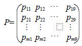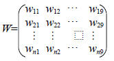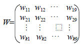Ahora, defínase la matriz: W= ||wij||, (k= 2 476 * 9), procedente del Censo Nacional de Población y Vivienda (INEGI, 2012), la cual contiene los datos de la población económicamente activa (PEA) por estado y por municipio, para cada una de las nueve actividades económicas: