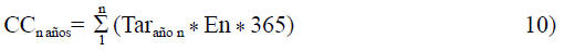 Se obtiene el costo de consumo a n (10, 15, 20 y 25) años (CCn años) con la siguiente expresión: