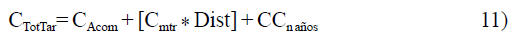 El costo total de las instalaciones de red eléctrica CFE incluyendo las tarifas de energía suministrada para agricultores (CTotTar) durante diferentes años se calcula de acuerdo con la ecuación (11):
