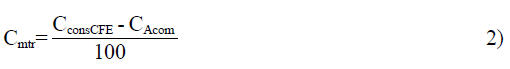Los costos de construcción de redes de energía eléctrica (CconsCFE) se obtienen analizando la normatividad de CFE (CFE, 2006) en función de la distancia, materiales, tipo de instalación y cantidad de energía a suministrar y considerando que es proporcional a la distancia en metros, y se calcula con la siguiente ecuación: