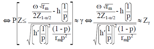 Donde: I (wt, y, p) es una función indicadora que muestra si la anchura calculada de IC real usando la Ec. 3 es ≤ ω, p es la proporción verdadera de la población y rp es el tamaño de la muestra obtenida mediante la Ec. 5. Debido a las limitaciones computacionales se utiliza la siguiente aproximación para calcular esta probabilidad.