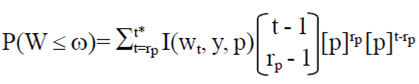 Donde: t= rp, rp + 1, rp+2,.. .t*, y W se considera una variable aleatoria ya que el valor exacto de p no se conoce y t* es el valor que satisface P(T ≤ t*)= 0.9999. Se utiliza el valor de t* ya que la operación en el Paquete R no puede sumar hasta infinito.