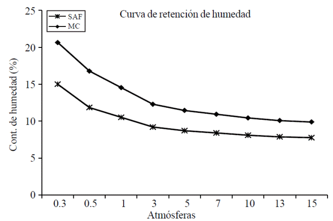 Figure 1 Curve soil moisture retention under the treatments SAF and MC.