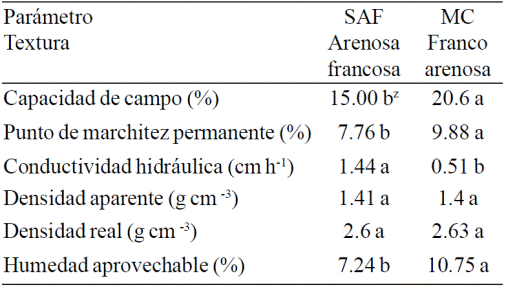 Table 1 Soil physical properties belonging to agroforestry system (SAF) and monoculture (MC) to 20 cm deep.