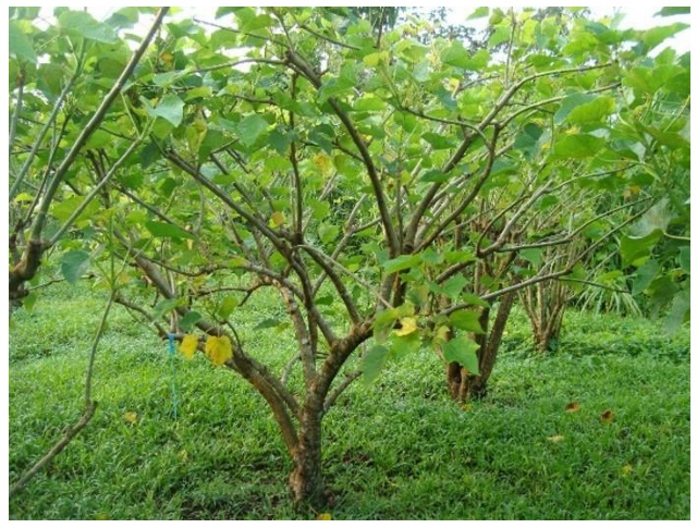 Doña Aurelia, es una variedad temprana de vigor medio, tiene una ramificación abundante, copa abierta y con área de goteo de 4 m2, un promedio de 61 ramas por planta. Doña Aurelia produce racimos semi-compactos con frutas elípticas de tamaño mediano (Figura 1). Una de las características importantes de esta variedad son las inflorescencias, con flores completamente pistiladas que permanecen durante la mayor parte del año (Zamarripa et al., 2017). Tiene un rendimiento de 211 racimos promedio, con 909 flores femeninas.