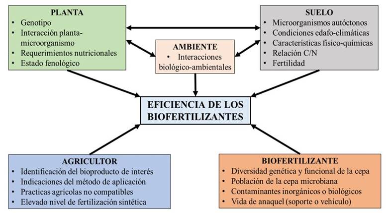 On the other hand, knowledge of the nutritional and environmental requirements of the microorganisms contained in the biofertilizers is decisive for their effectiveness, as well as their capacity for plant colonization, adaptation to the soil and interaction with native microorganisms (Khalid et al., 2004; Grageda-Cabrera et al., 2012). Nutrient availability, pH and salinity determine the survival of microorganisms in the soil, the shortage or excess of any chemical compound can rapidly decrease the inoculated microbial population.