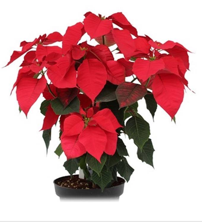 Figura 1 Variedad de nochebuena ‘Victoria’ en etapa de pigmentación de brácteas y presentación final para su venta al mercado.