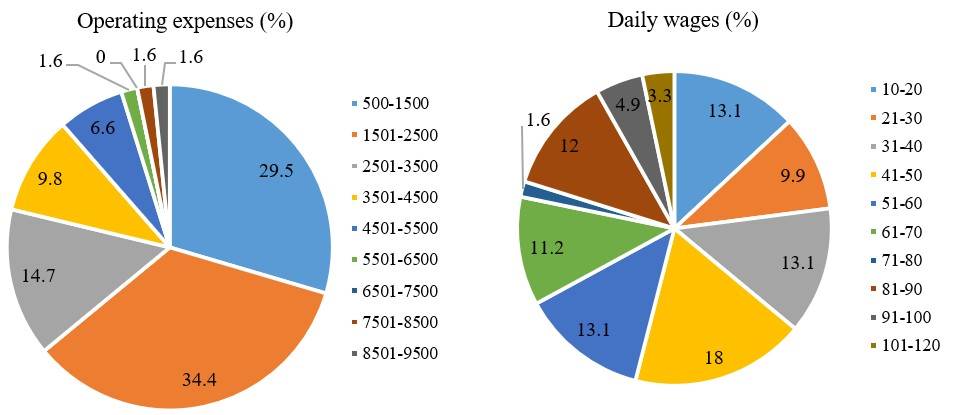 Figure 4 Operating expenses and number of daily wages (%) for coffee cultivation in the municipality of Pantepec, Chiapas.