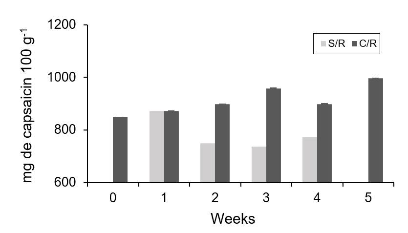 The capsaicinoids responsible for the spiciness in chili fruits showed significant variation between those with the coating and the control batch, where the former were the ones with a higher content of this variable throughout refrigerated storage.