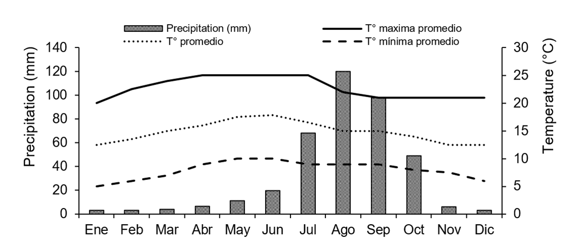 The research was conducted in Ahuehuetitla, Tulancingo, Hidalgo, Mexico, located at 20° 05’ 04.37” north latitude and 98° 24’ 49.80” west longitude, at an altitude of 2 168 m. The climate is subhumid temperate, with an annual rainfall of 550 mm and an average annual temperature of 16 °C (García, 2004). The soils are vertisols with a clayey texture (INEGI, 2017).