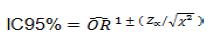 donde a,b,c, y d son frecuencias observadas para cada una de las clases definidas en la tabla. Además, se calcularon intervalos de confianza al 95% para cada CR de aplicar: