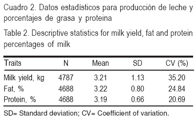 En este estudio se utilizaron registros diarios de 390 vacas con diferentes días de lactación en el hato del censo recogido y verificado por la organización agrícola de Guilán. En el Cuadro 2 se presenta el resumen estadístico de las características de la leche en la población estudiada.